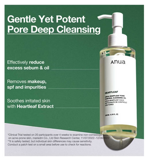 Effectively remove impurities and excess sebum while caring for acne-prone and sensitive skin with Anua Heartleaf Pore Control Cleansing Oil. This gentle yet powerful cleansing oil is enriched with Heartleaf extract, known for its soothing and purifying properties, and hydrates the skin while clearing blackheads and makeup residue without clogging pores.