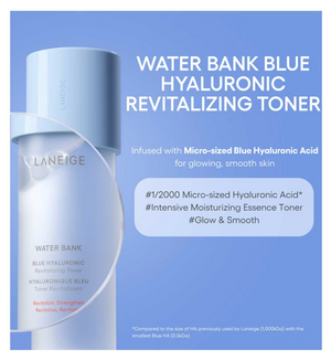 Replenish your skin with the LANEIGE Water Bank Blue Hyaluronic Essence Toner (160ml) – a deeply hydrating first-step toner designed for normal to dry skin. Infused with Blue Hyaluronic Acid, this lightweight essence toner locks in lasting moisture, leaving skin soft, radiant, and refreshed.